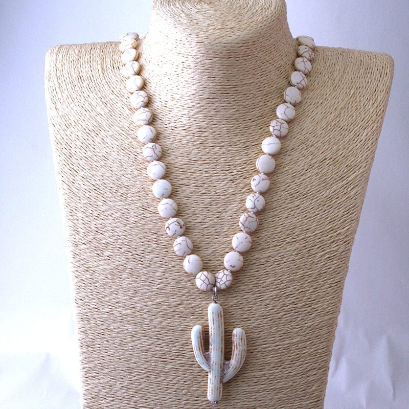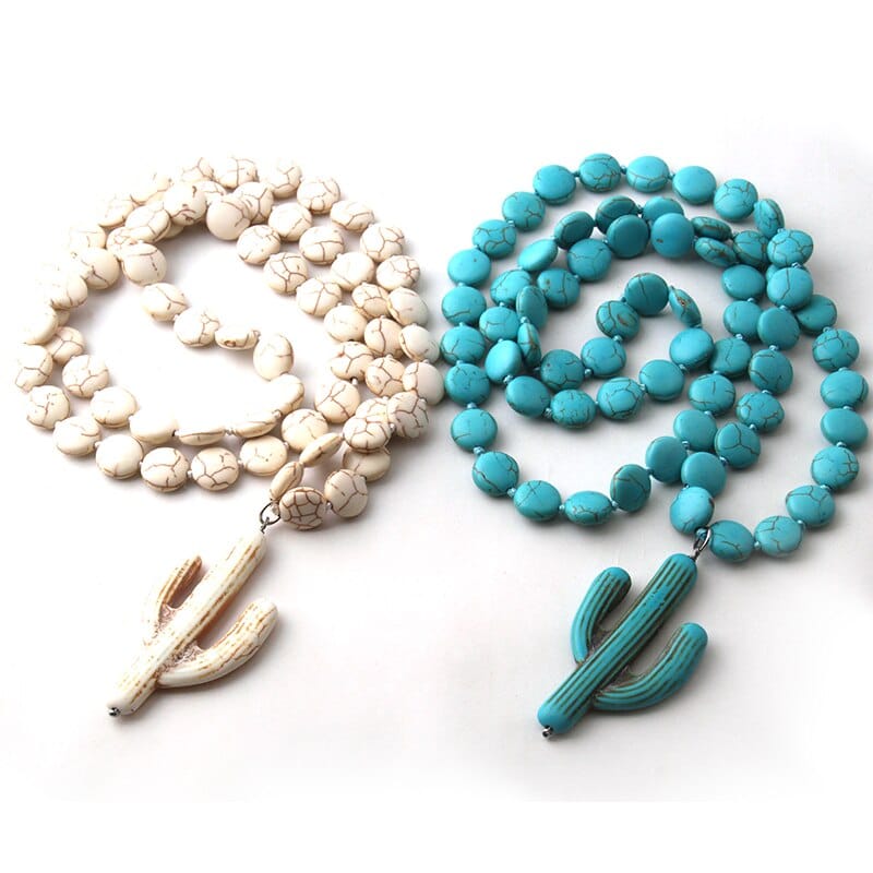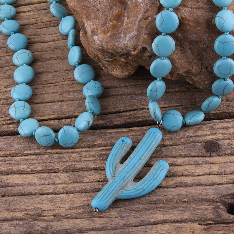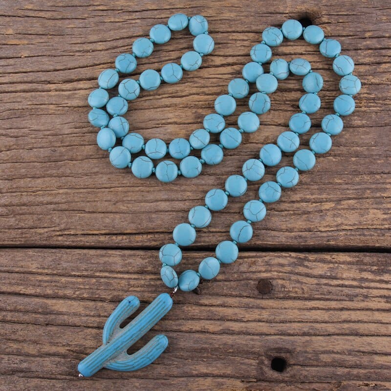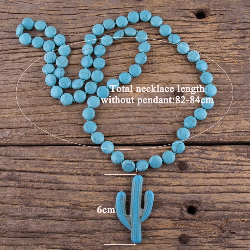 Fashion Knotted Flat Turquoise Stone Ethnic Cactus Necklace Bohemian Necklace