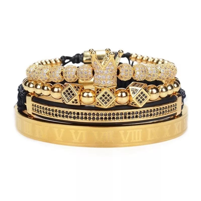 Luxury Royal Crown Gold Men’s 4Piece Bracelet Set